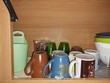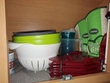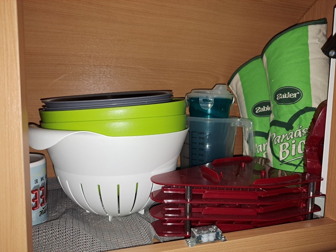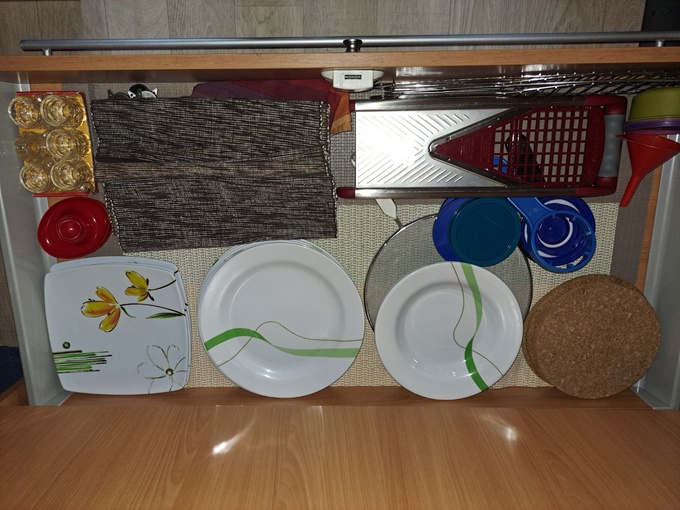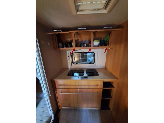 Normal signs of use, normal wear and tear, slight scratches on the front (see pictures) small flaking on the shelves (see pictures) these are because the rubber buffers that are glued to the cabinet doors had stuck to the surface. When opening the doors, the veneer stuck to the rubber buffers in some places.
