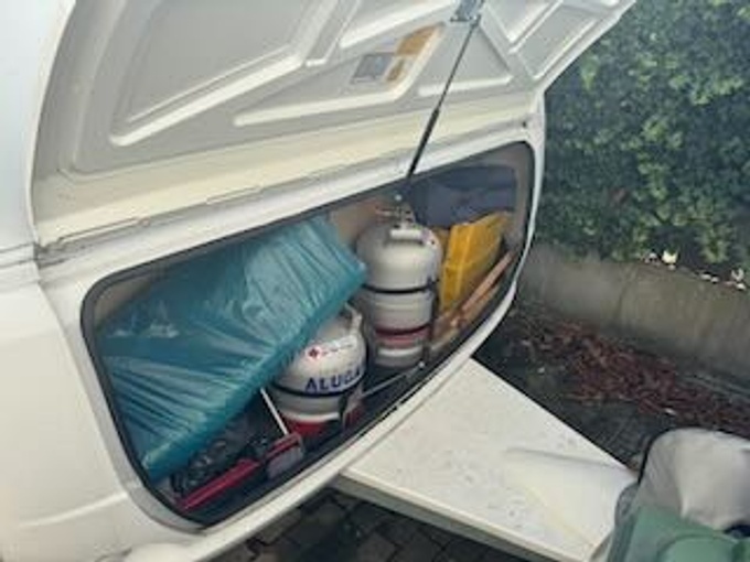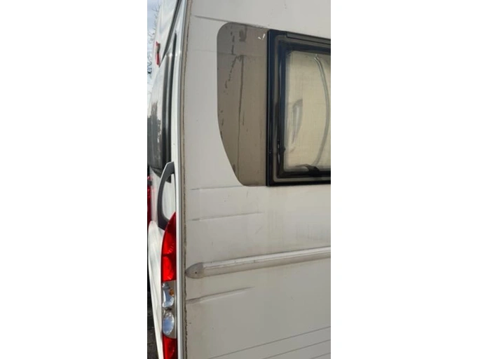 - Rear right: damage caused in 2019 when parking (streaks approx. 5 mm, wall not broken through) - edge strip and hinged window were professionally replaced (invoice available)