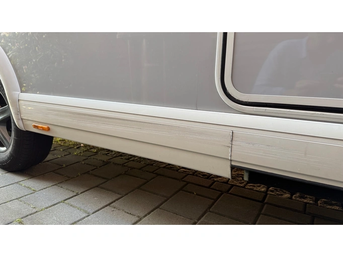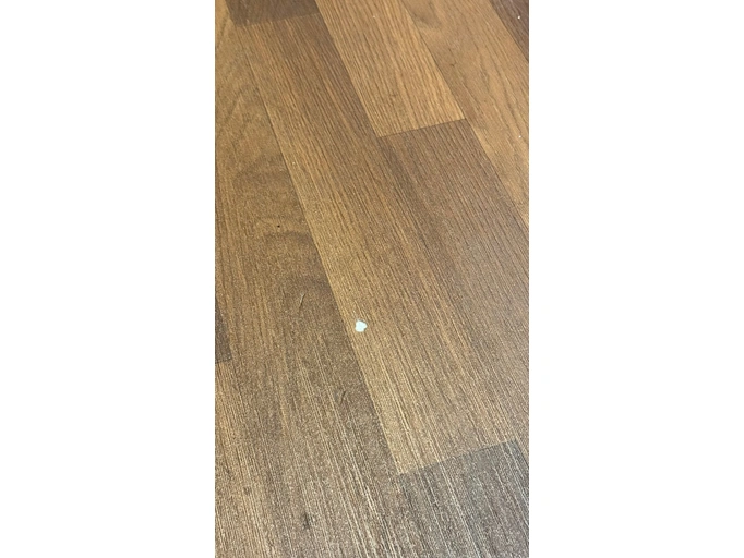 One damage, the size of a 1-cent piece, in the floor in front of the drawer. Scratches on the outside in the middle right of the plastic paneling due to grazing on stone.