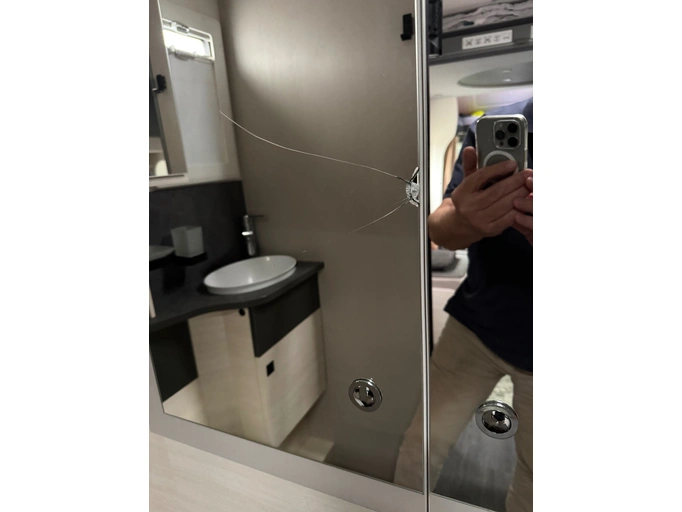 One of the mirrors on the closet doors is cracked