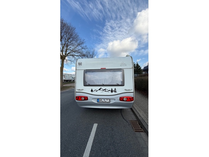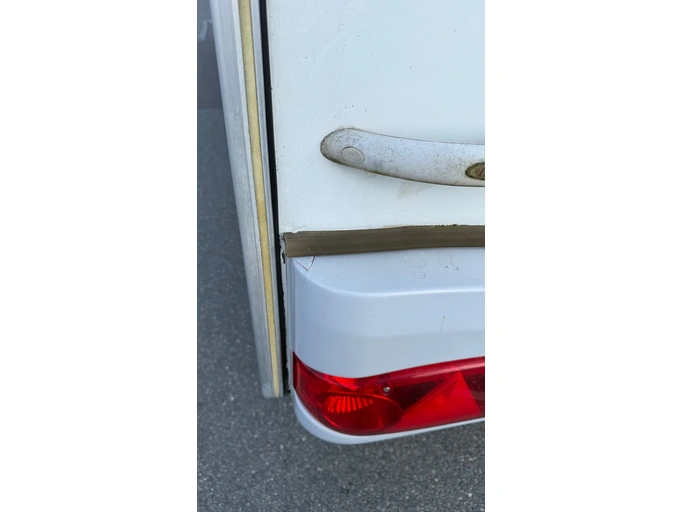 At the rear of the caravan at the rear lights slight paint chipping and small cracks in the plastic paneling