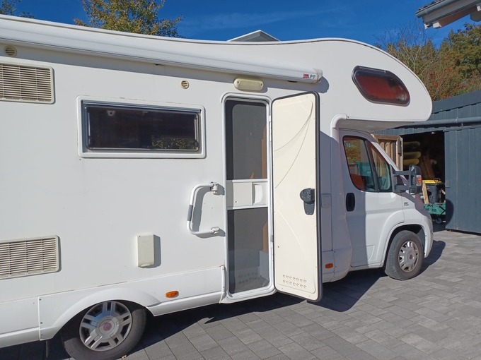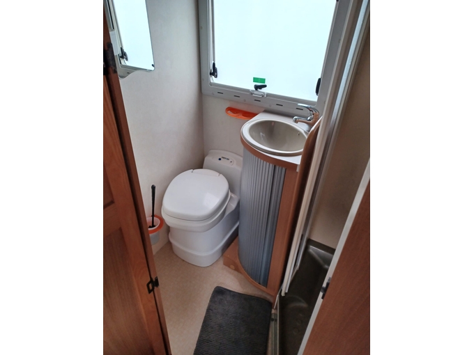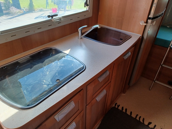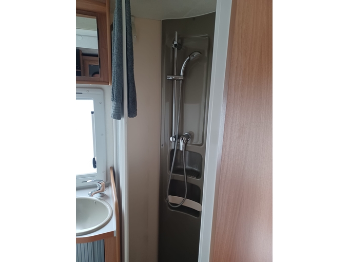 One alcove window damaged, shower cubicle door glued, signs of use