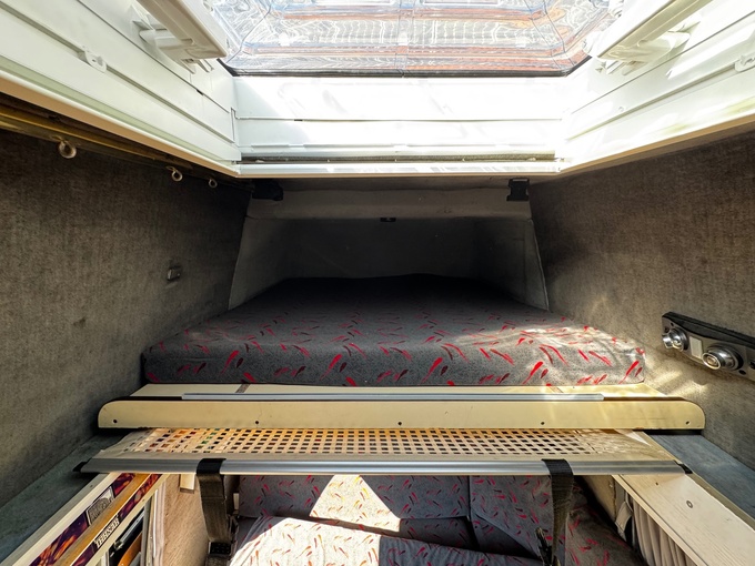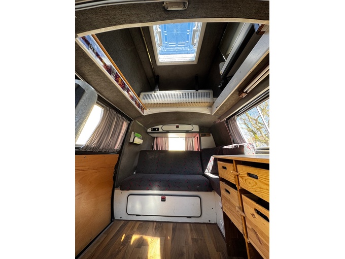 Wear and tear typical of old age, especially on the paintwork. A hole has rusted through in front of the rear wheel arch, but no safety-relevant parts are affected.
